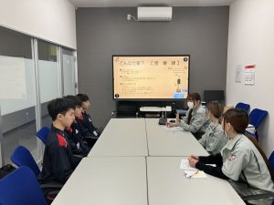 各課の仕事内容の座学から始まり、課題のスマホスタンドを作るために、